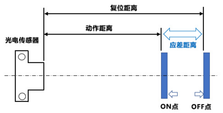 首先跟大家解釋下何為應(yīng)差,應(yīng)差簡(jiǎn)而言之就是距離,那是哪里到哪里的距離呢?下文會(huì)為大家做一個(gè)詳細(xì)的舉例說(shuō)明,其文字描述為反射型光電傳感器時(shí)間動(dòng)作距離與復(fù)位距離之差,稱為“應(yīng)差”。