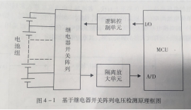 在BMS中, 想要更大限度地利用電池存儲能力和循環(huán)壽命。那么可以選擇基于繼電器開關(guān)陣列的電壓檢測是常見的方案之一, 其原理就是利用繼電器開關(guān)陣列實現(xiàn)對各個單體電池選統(tǒng), 然后將被選通的電池的電壓通過隔離運算放大器送入A/D轉(zhuǎn)換器,通過輪詢,依次實現(xiàn)對各個電池電壓的采集, 檢測, 如下圖: