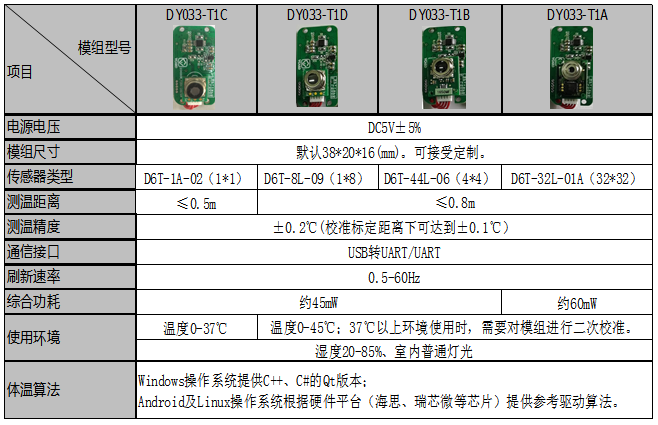 熱成像模組是基于歐姆龍紅外陣列高精度溫度傳感器以及先進軟件算法的非接觸式熱成像技術,可對視場范圍內任何物體進行紅外成像測溫,具備溫度數(shù)據(jù)實時輸出顯示,通過UART輸出方式, 配合上位機軟件使用。歐姆龍熱成像模組廣泛應用于電子設備開發(fā)、PCB 測試、新材料、 供暖施工、非接觸溫度測量、非法侵入、生物探測等行業(yè)和領域。