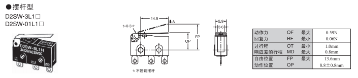 D2SW 密封型超小型基本歐姆龍開關