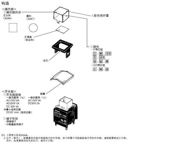 A3A系列 按鈕開關 大容量、緊湊型、小型方體型按鈕開關
