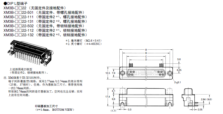 XM3B 插座、DIP L型端子