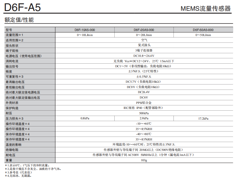 實(shí)現(xiàn)小型化 量程0~50L/min 流量域的高精度傳感性能 可對(duì)10~50L/min的質(zhì)量流量進(jìn)行高精度檢測(cè)。 實(shí)現(xiàn)長(zhǎng)30mmX寬78mmX高30mm